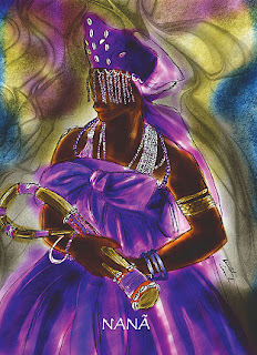 Características dos filhos de Nana Buruque Os filhos de Nanã são pessoas extremamente calmas, tão lentas no cumprimento das suas tarefas que chegam a irritar. Agem com benevolência, dignidade e gentileza. As pessoas de Nana parecem ter a eternidade à sua frente para acabar os seus afazeres; gostam de crianças e educam-nas com excesso de doçura e mansidão, assim como as avós. São pessoas que no modo de agir e até fisicamente aparentam mais idade. Podem apresentar precocemente problemas de idade, como tendência a viver no passado, de recordações, apresentar infecções reumáticas e problemas nas articulações em geral. As pessoas de Nana podem ser teimosas e “ranzinzas”, daquelas que guardam por longo tempo um rancor ou adiam uma decisão. Porém agem com segurança e majestade. As suas reacções bem equilibradas e a pertinência das suas decisões mantêm-nas sempre no caminho da sabedoria e da justiça. Embora se atribua a Nana um carácter implacável, os seus filhos têm grande capacidade de perdoar, principalmente as pessoas que amam. São pessoas bondosas, decididas, simpáticas, mas principalmente respeitáveis, um comportamento digno da Grande Deusa do Daomé. Omulu/Obaluaê